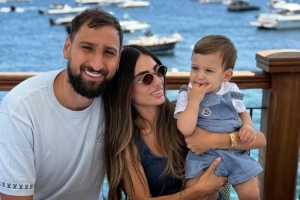 多纳鲁马周六在社交媒体上晒出与家人的合照,三人面前摆放着装有甜点的餐盘,上面写着“1号”( 意大利语Numero 1)的字样,似乎在暗示他在巴黎头号门将的地位。